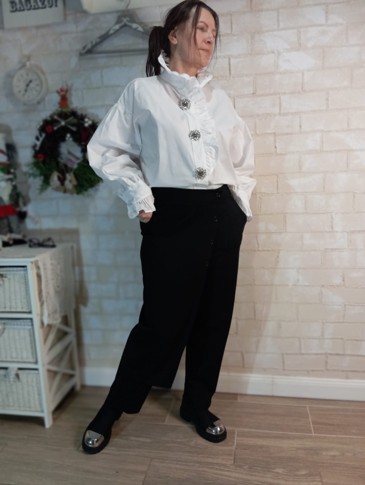 Koszula z żabotem – śmietana